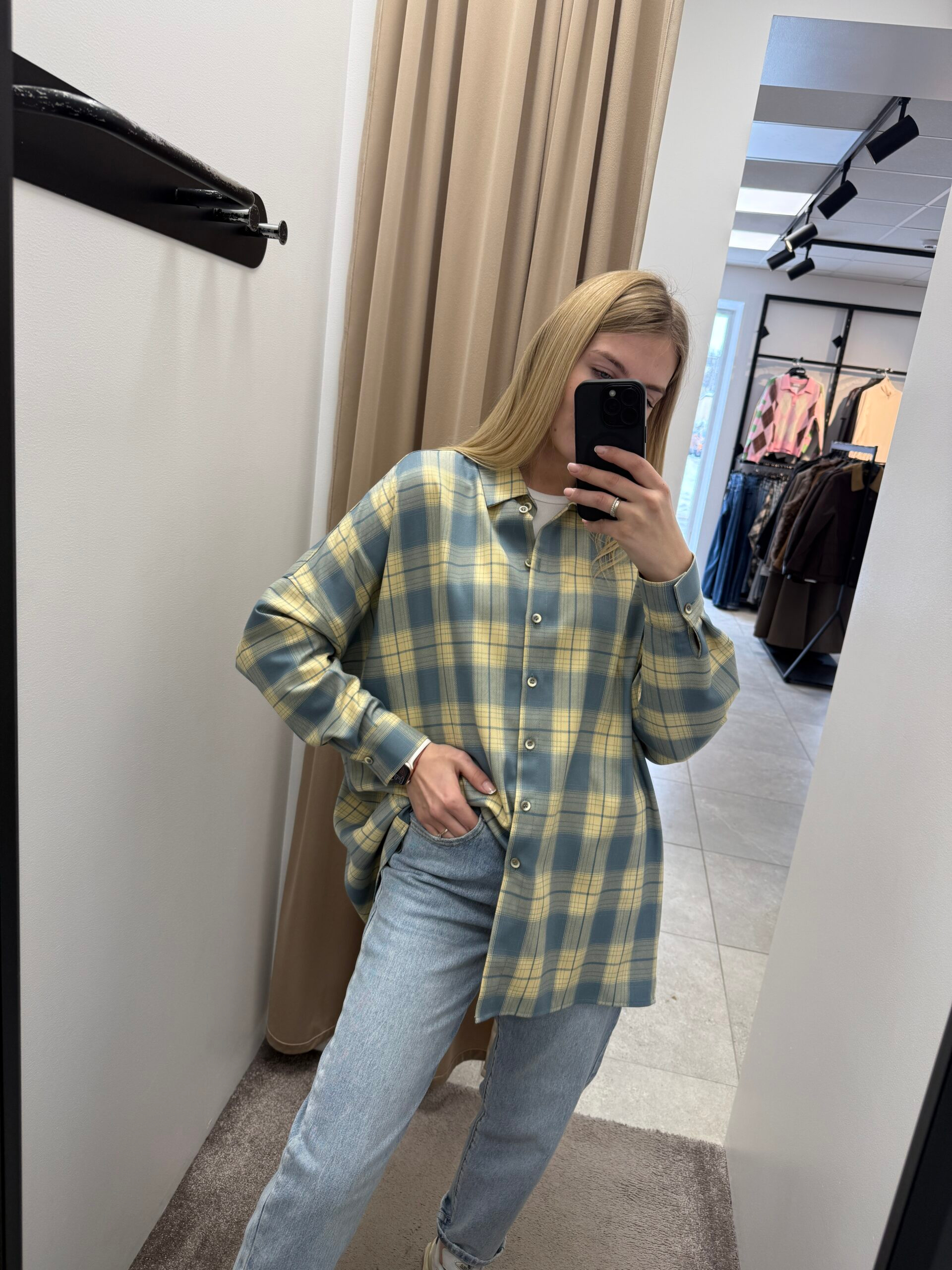 Marškiniai yra oversize modelio.